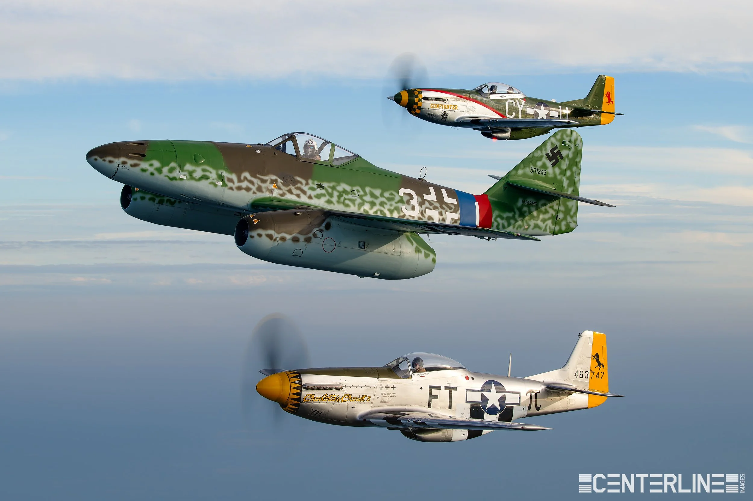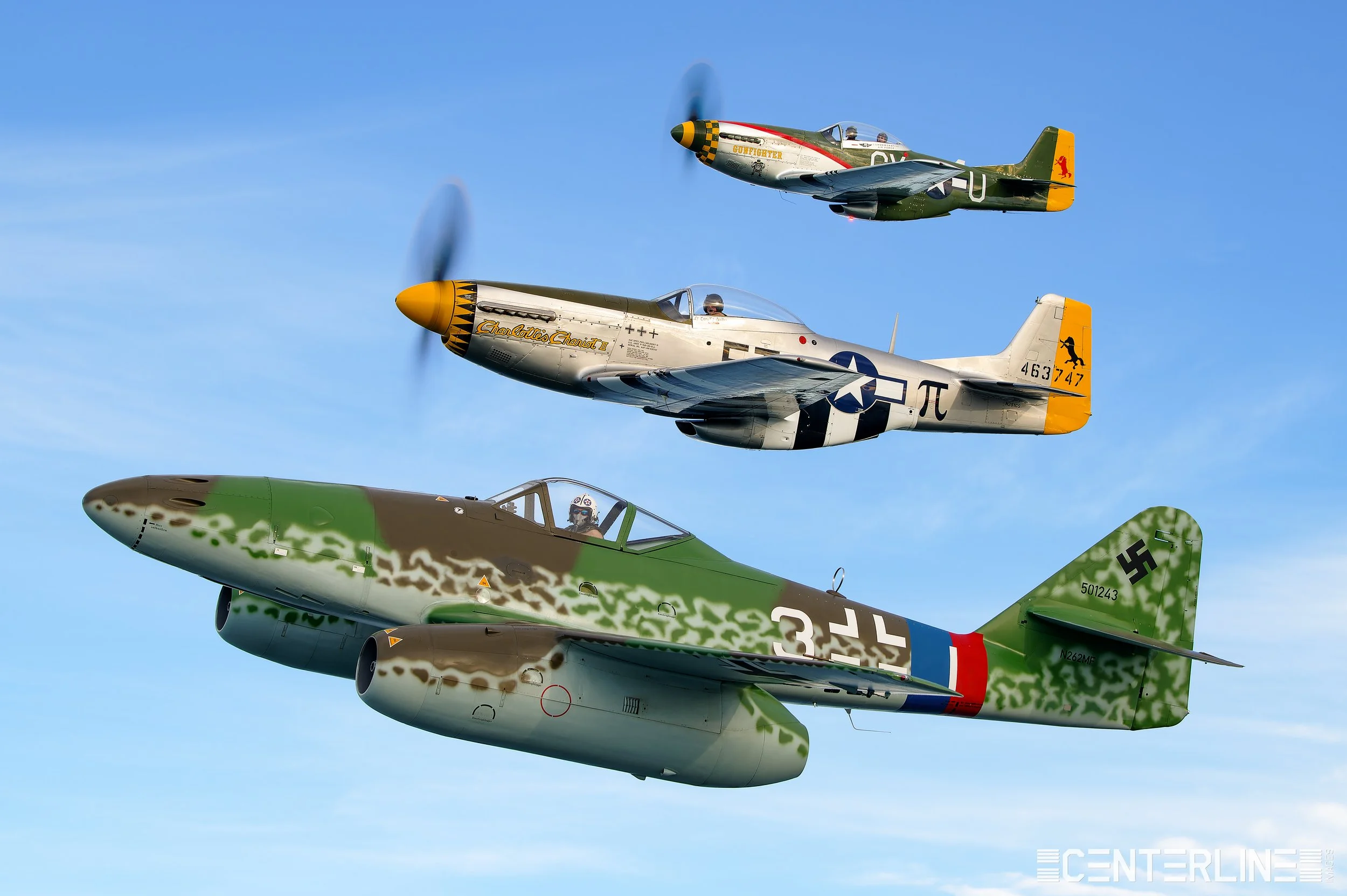 It goes without saying that the air-to-air flying was just as memorable. I was privileged to go up in another formation with the OV-10 Bronco and HU-16 Albatross — an incredibly unique pairing that never gets old — along with a remarkable World War II three-ship formation consisting of the rare German Me 262 Schwalbe and two of its former adversaries, the P-51D Mustangs. And to cap it off, a Douglas Skyraider three-ship that delivered exactly the kind of presence you’d expect from that much radial horsepower in one frame. Not bad for an already packed Oshkosh week!